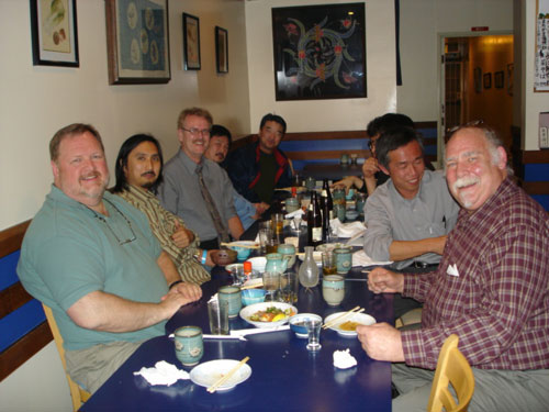 「DeTemple社、KTS社と食事、DeTempleではすばらしい音のアンプ "Point Blank Amp" が完成したとのことで近々紹介できると思います。お楽しみに!」