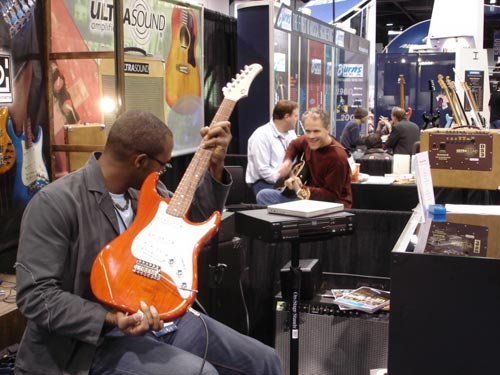 隣のブースで試奏している人とセッション始めてしまいました。