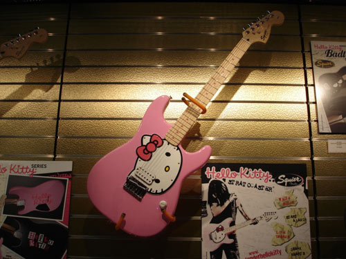 Fenderのフロアにはキティのギターが。