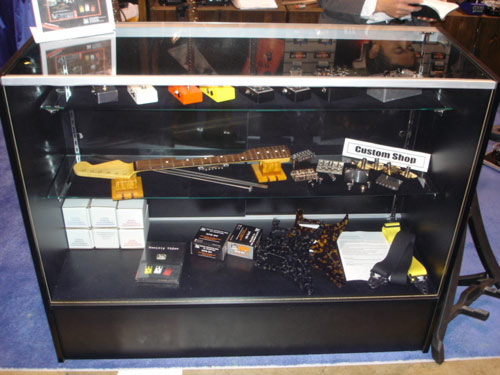 Partsの棚です。Xotic Customベッコウガードもなかなか好評でした。
