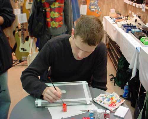 片岡さんのPower Book G4へのペイントを開始するJason。