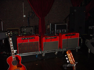 Brad:いや、いつも3台一緒に鳴らしているんだよ。 ステージではちゃんと良いモニターを設置してあるんだけど、毎晩大音量でライブを演ってるとだんだん耳が悪くなってくるんだ。 そこで、ステージの上でもいつも良い音が聞こえる状態にしておきたいんだ。 またヴォーカルサウンドもギターと分けて聞こえるようにしたい。 また、レコーディングで出した音をできるだけライブでも再現したいんで、色々試してみた結果Dr.Zアンプをトリオで使う事にしたんだ。 フロントにも音がよく出てくるので、オーディエンスにとっても良いサウンドになっていると思うよ。 両端2台がMazerati Comboで、真ん中がMAZ-18 Comboにしてあるんだ。 PCI:これは大変興味深い話です。 もう本番ですね。 ライブ楽しみにしています。