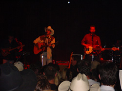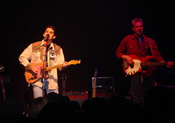 BradとテックのChris (この後、全員総立ちの超満員のシアターでライブが始まり、ブラッドの歌、ギター、語りに皆が熱狂しました。 将来楽しみな人です。)