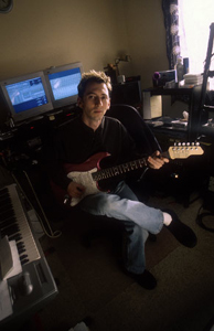 PCI:その女性シンガーの名前は何ですか? Jay:Kari Walterっていうんだ。彼女はロスのシンガーなんだ。ナッシュビルの有名なプロデューサー、Byron Gallimoreと僕やシェインが仲がいいんで、一緒にこのプロジェクトを進めてるんだよ。 他にもデモCDを作りたいというミュージシャンの為に、僕のこのスタジオでプロデュースやミキシングもやってあげてるんだ。 PCI:デジタル機材が進歩しましたから、小さな場所でも質の良いCDが出きるようになりましたね。 Jay:そうだね。 質の良いデモテープを作るのは実はもう13才の頃からやってるんだよ。 ビッグコンソールの置いてあるスタジオで、13才の時にすべてのツマミやしくみを教わったんだ。 |